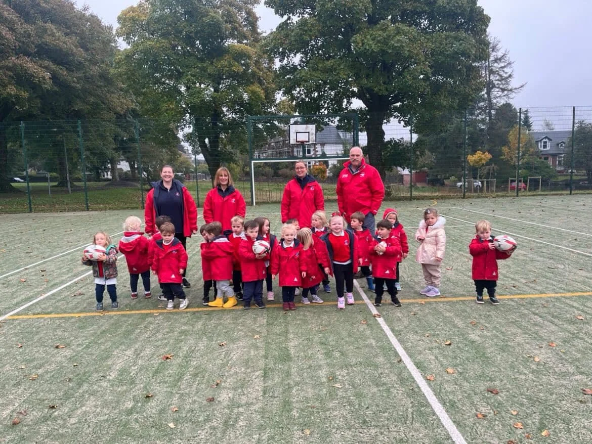 It has been a very busy few months, we have embraced our outdoor learning with our weekly adventures to the “deep dark woods” in the park, football sessions with Morton in the Community and a fabulous introduction to rugby with a visit from members Birkmyre Rugby.